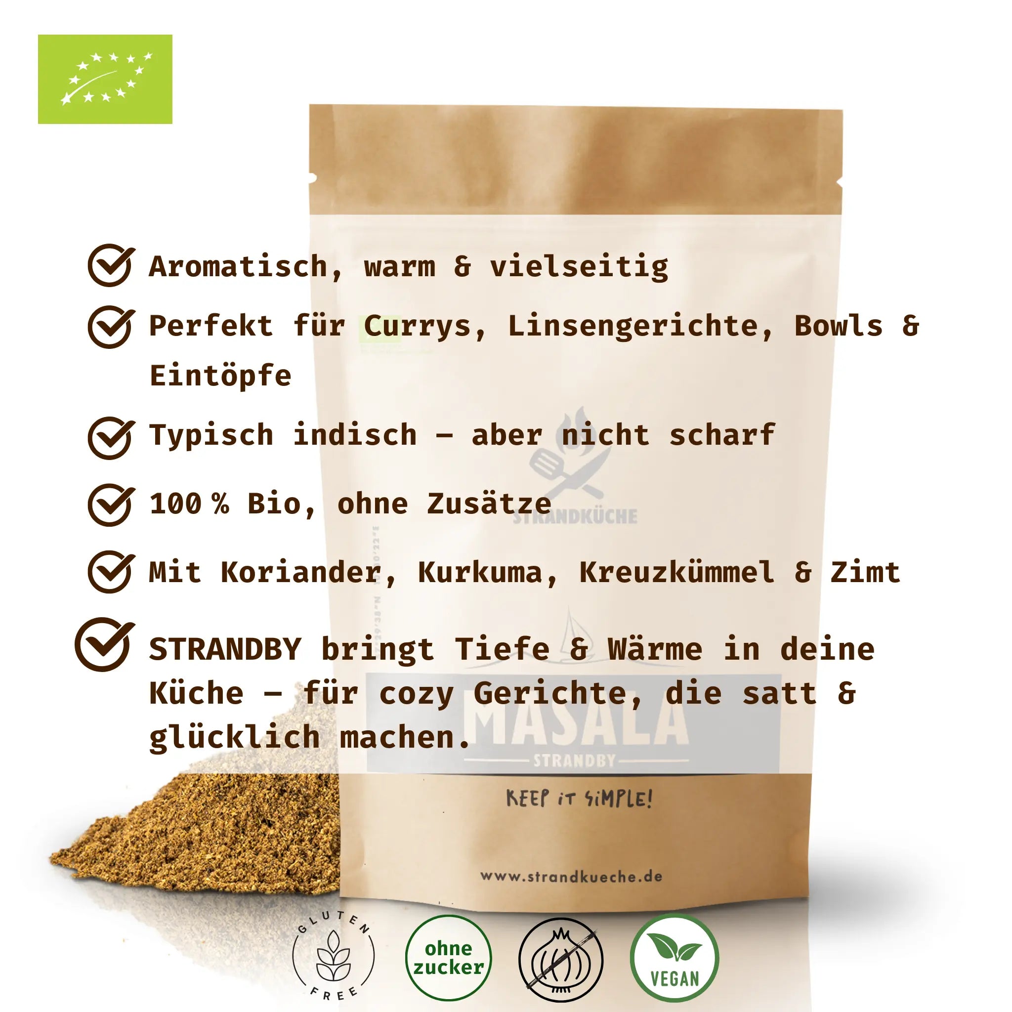 100% natürliche Bio-Zutaten, frei von jeglichen Zusätzen, vegan und glutenfrei.